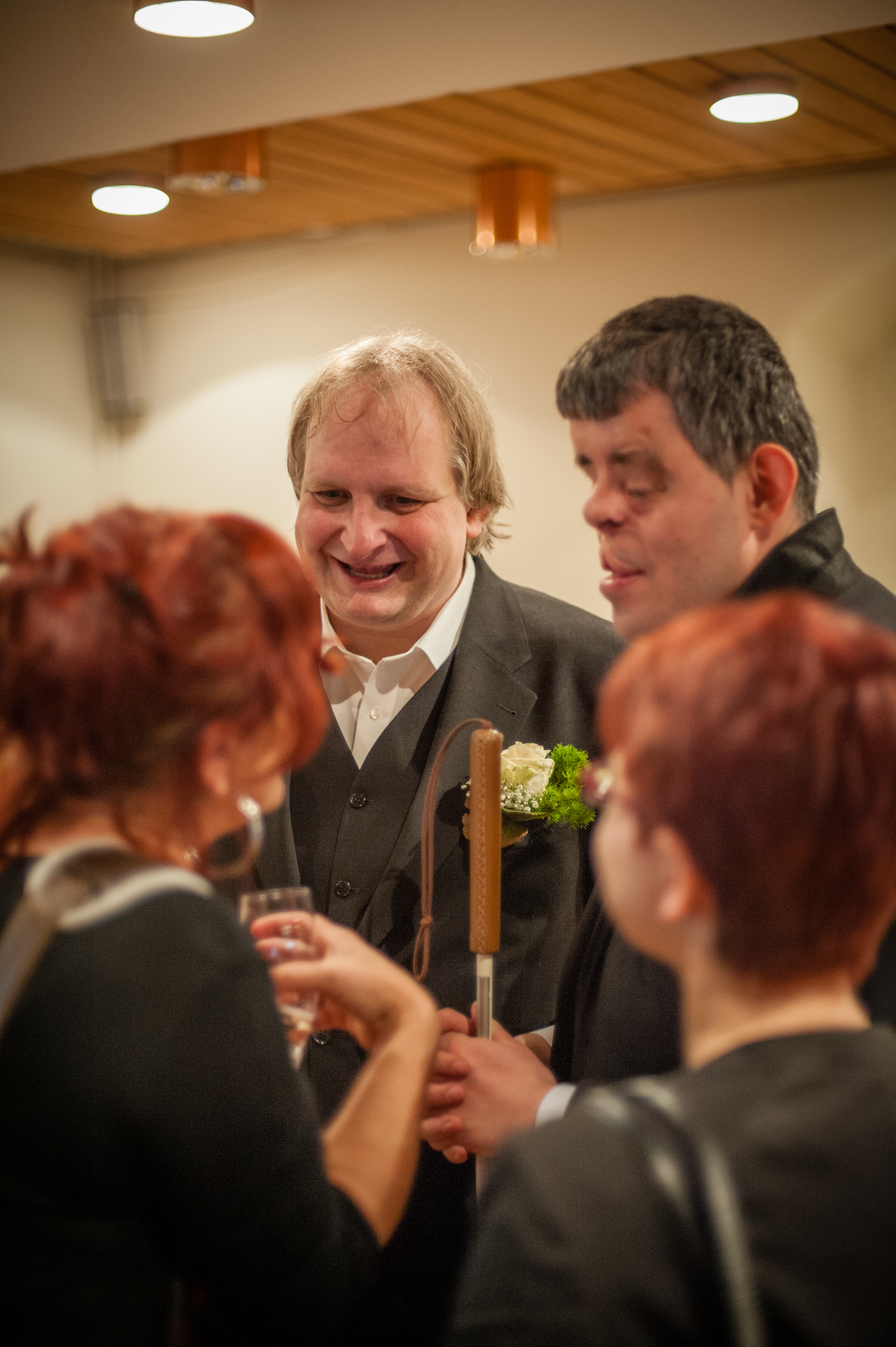 Der Bräutigam freut sich und begrüsst Gigi (links), Daniele (mitte) und Larissa (rechts)