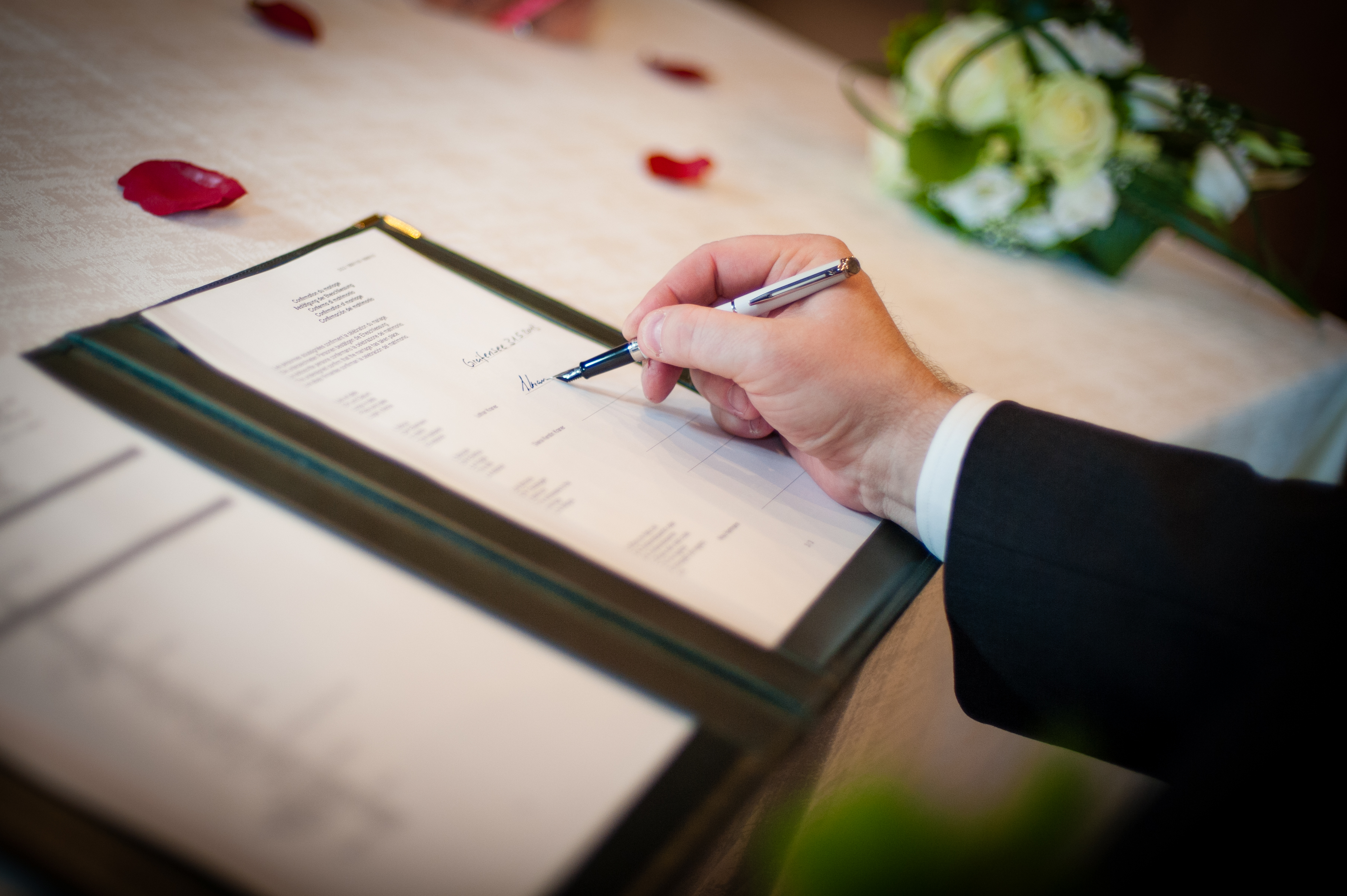 Lothar unterschreibt die Hochzeitsurkunde